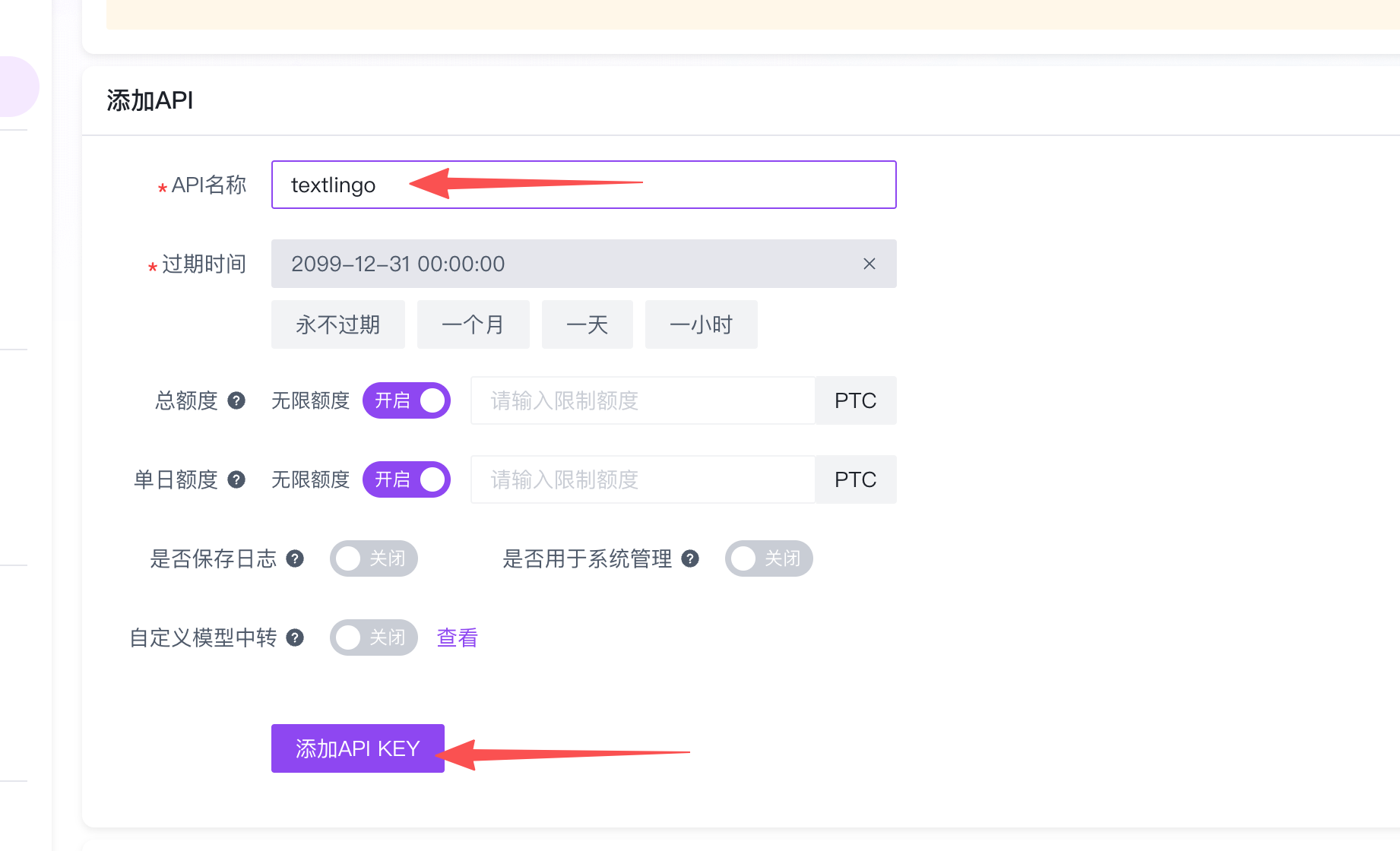 - API Key: 粘贴您刚才复制的 Key。
